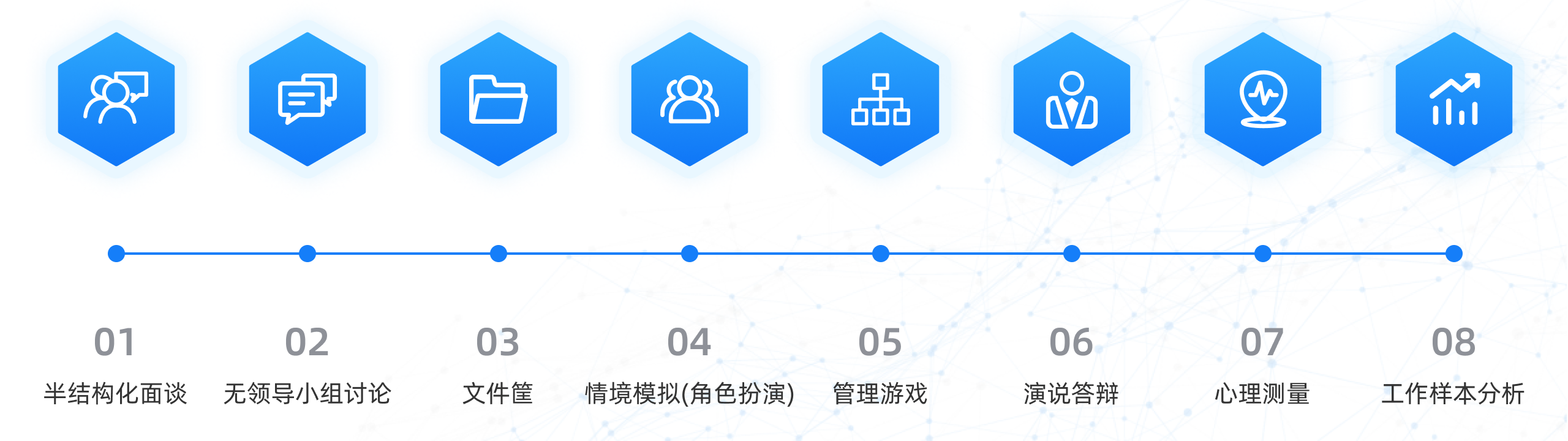 自主研发并熟练运用包括半结构化面谈、无领导小组讨论、文件筐、情境模拟(角色扮演)、管理游戏、演说答辩、心理测量、工作样本分析等在内的各类测评工具;